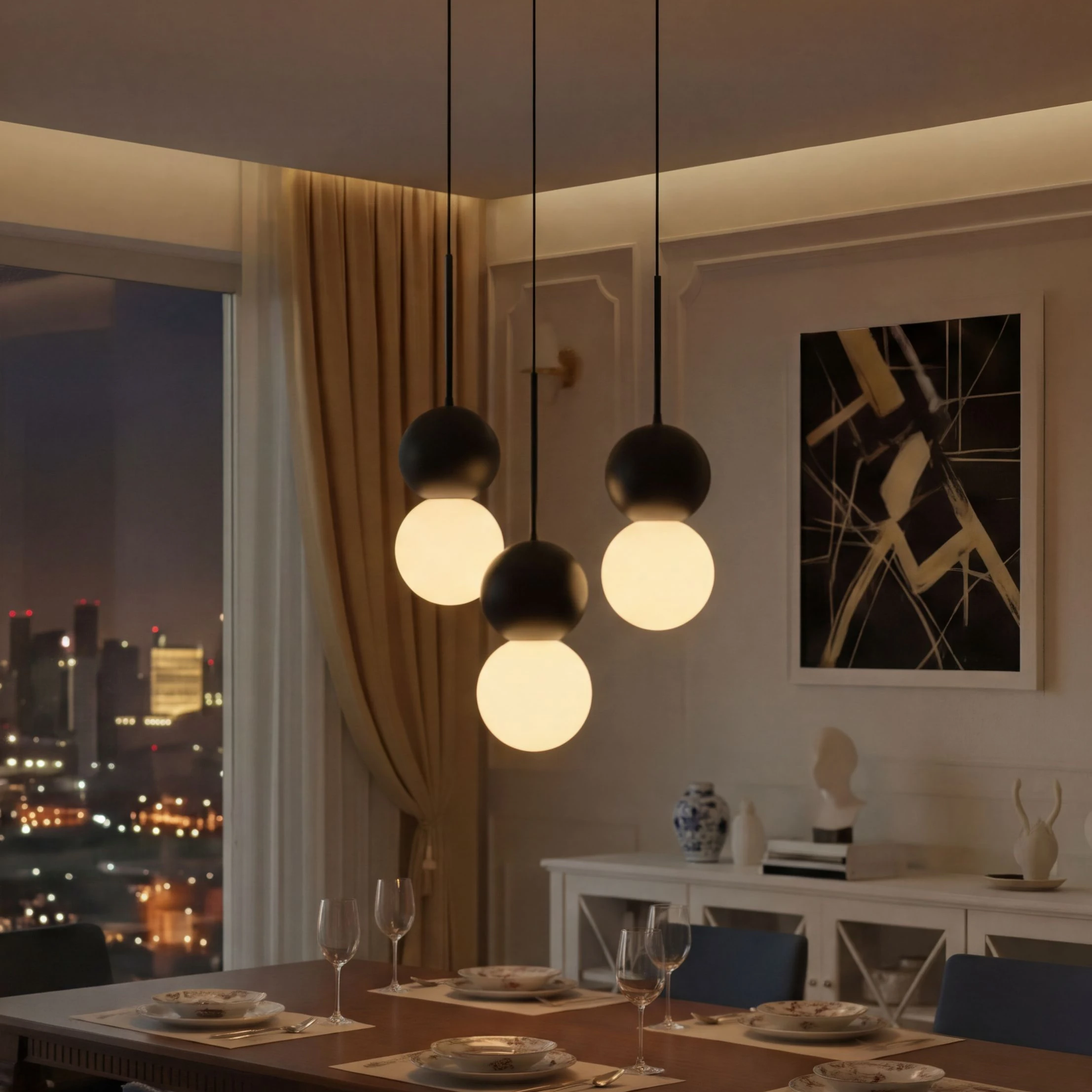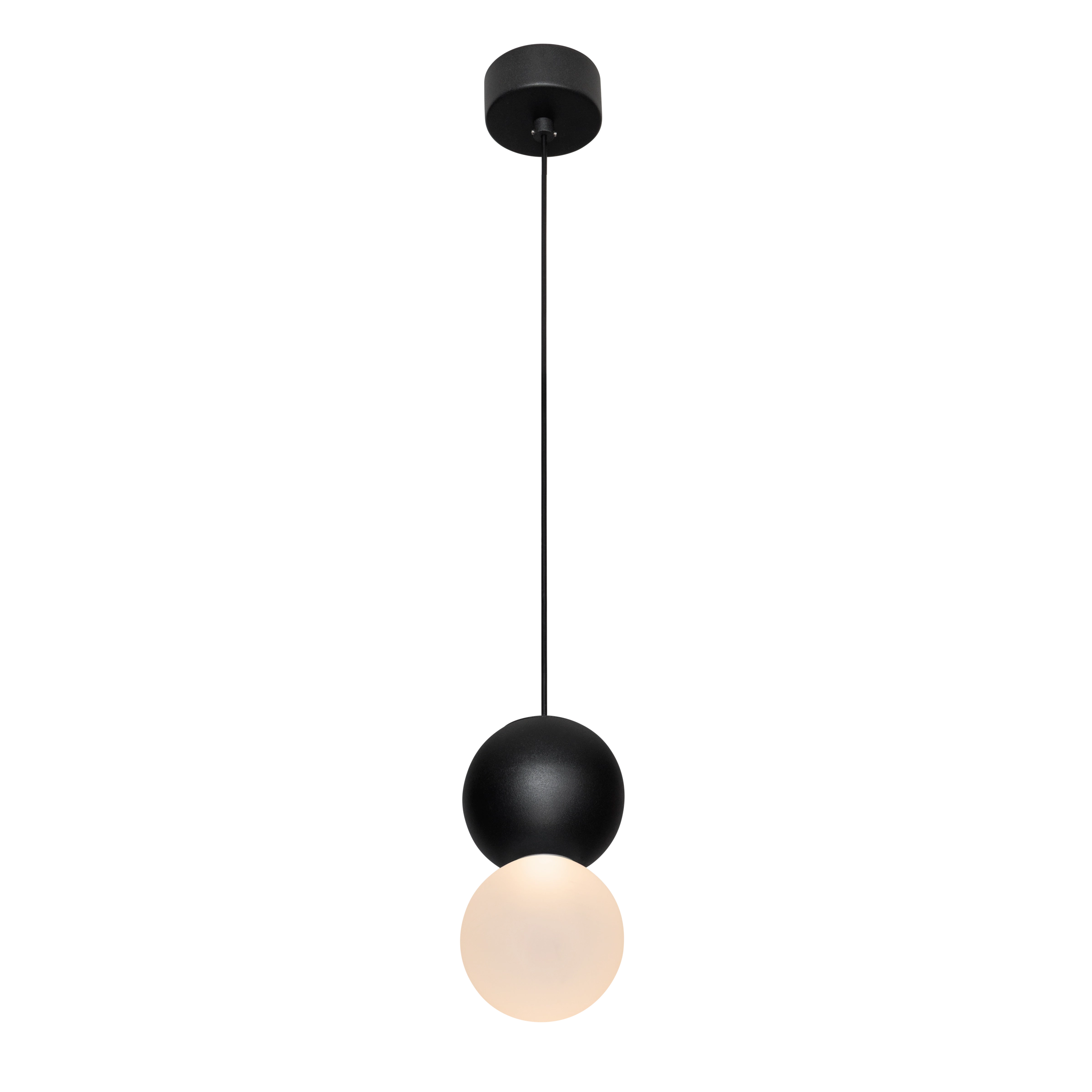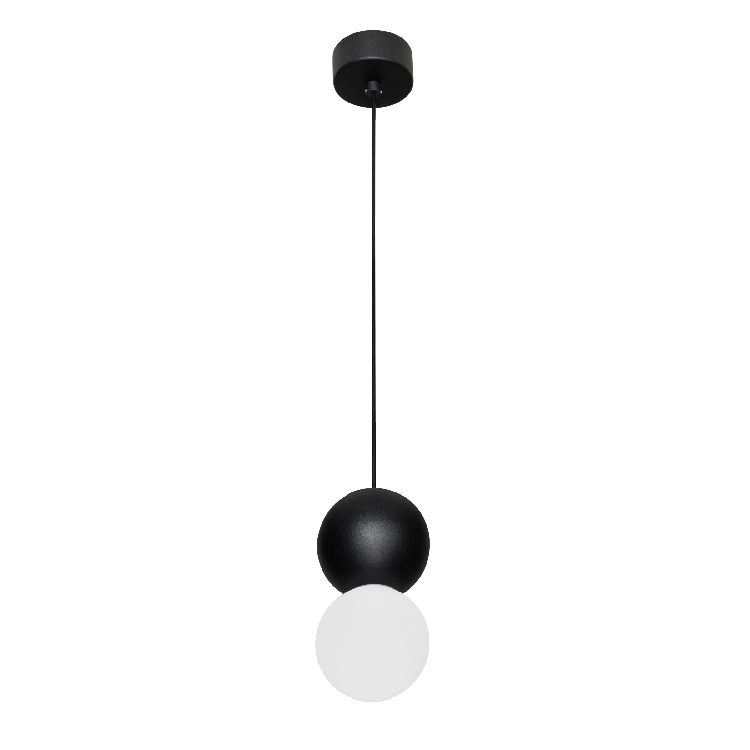 Стильный подвесной светильник LODY в черном исполнении – современное сочетание металлического верхнего шара и матового стеклянного нижнего. Нижний матовый шар создает мягкое рассеянное освещение, идеально подходящее для зон отдыха и приема пищи. Черное исполнение подчеркивает минималистичный характер дизайна и идеально сочетается со стилями лофт, хай-тек и индустриальный дизайн. Светильник комплектуется надежным блоком питания с защитой от перепадов напряжения для обеспечения долговечности. LODY B станет идеальным выбором для освещения обеденной зоны в современной квартире, зоны отдыха в гостиной или спальни.